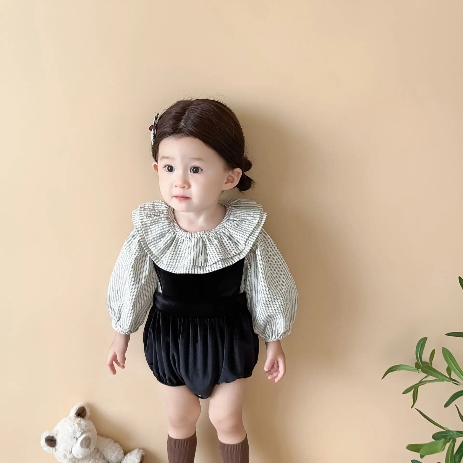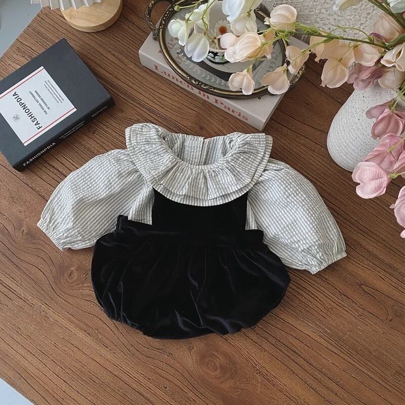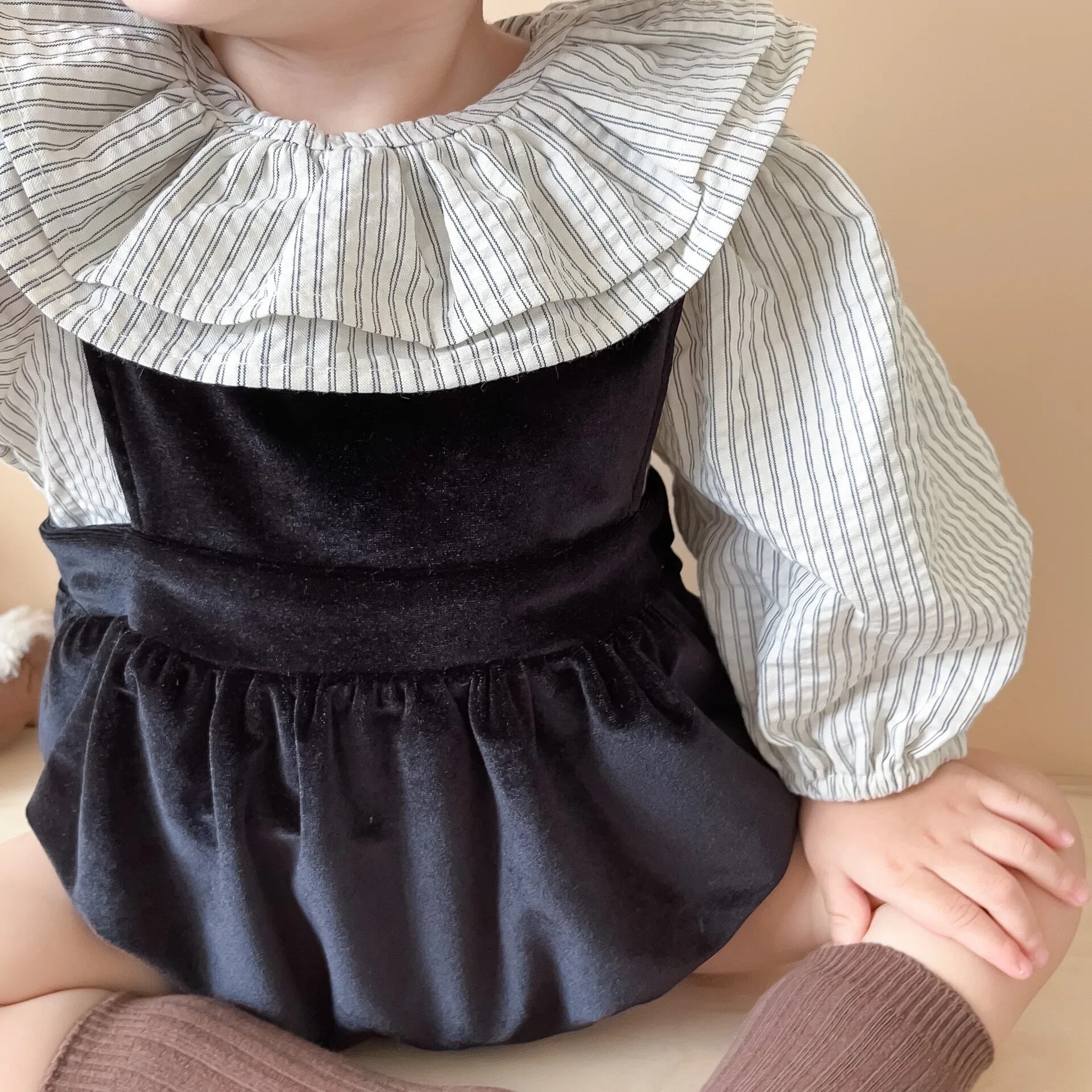 ベロア生地ロンパースがセットになったアイテムです´-