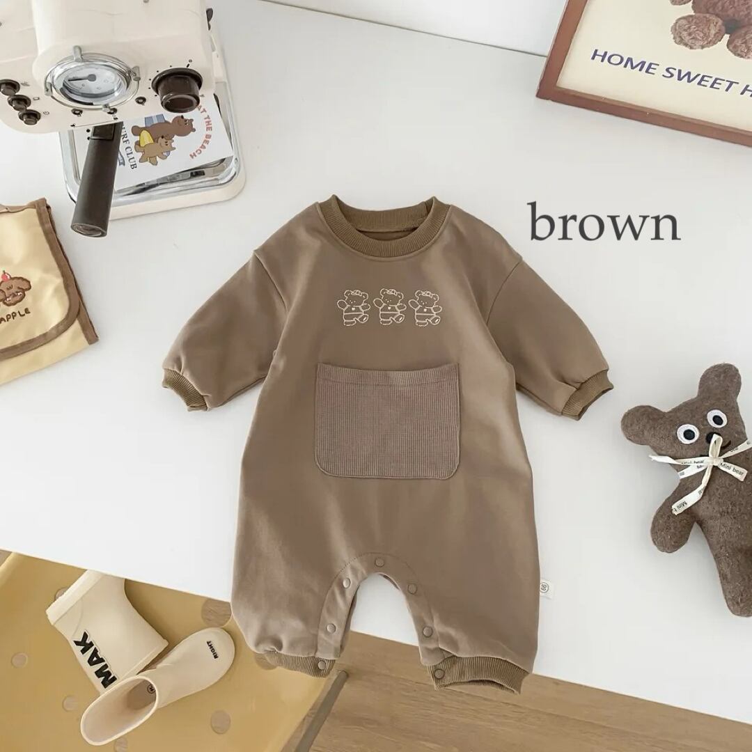 クマさんがプリントされたcuteなロンパース♩