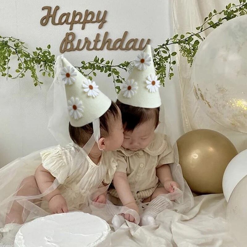 チュールとお花がcuteなパーティーハットです⭐︎´-