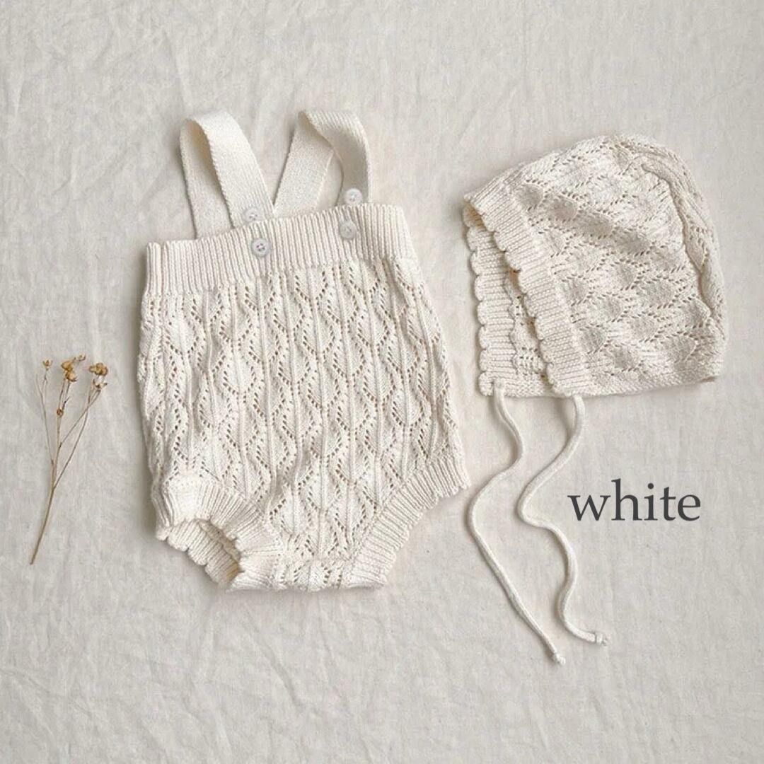 編み目のcuteなサロペットと帽子のsetです♩´-