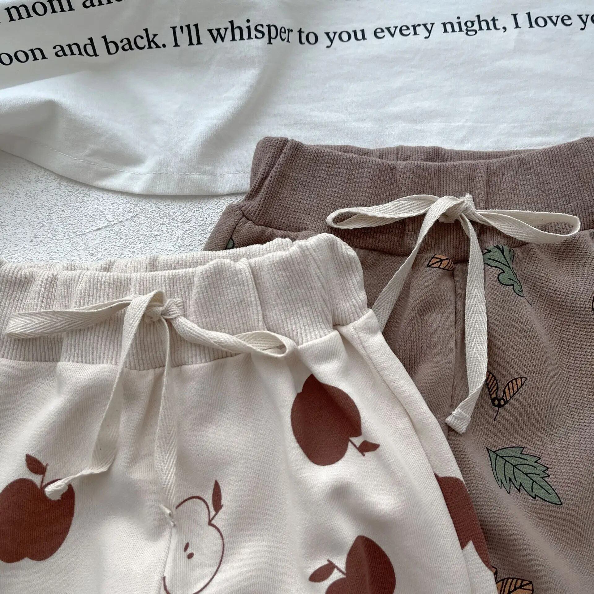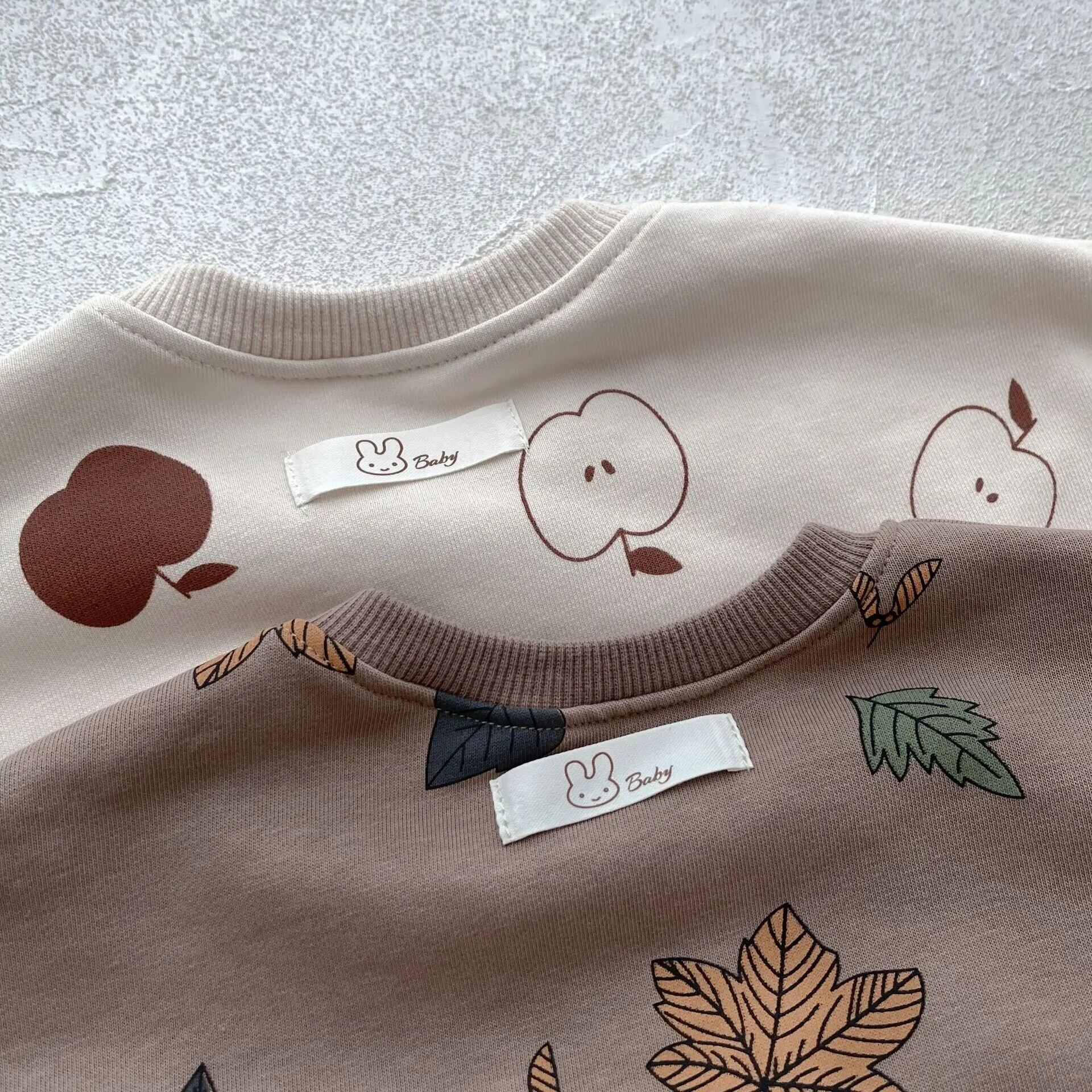 りんご柄と葉っぱ柄のスウェットsetup♩´-