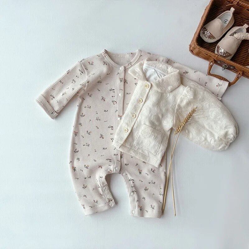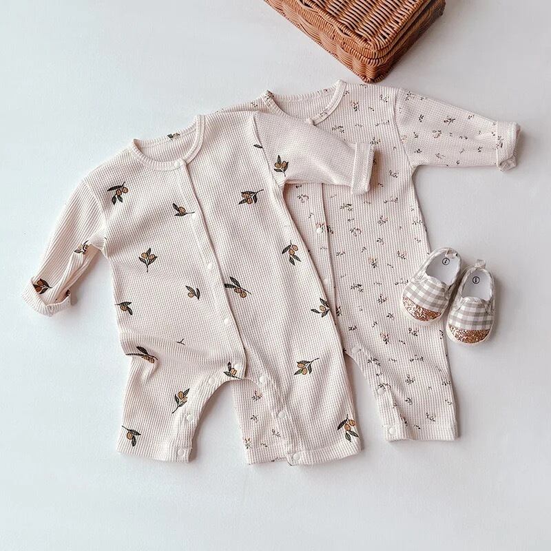 ワッフル素材の優しいロンパースです