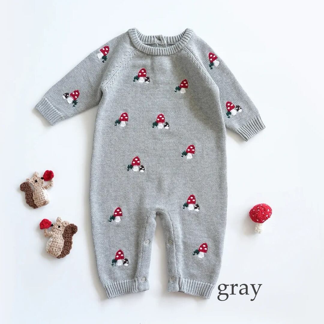 きのこ柄がcuteなロンパースです´-
