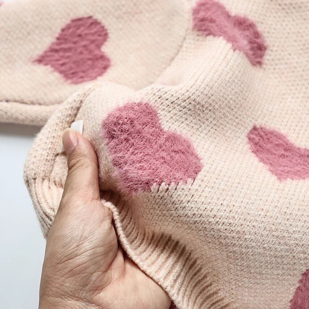 ハート柄のかわいらしいニットセットアップ.ᐟ.ᐟ♩