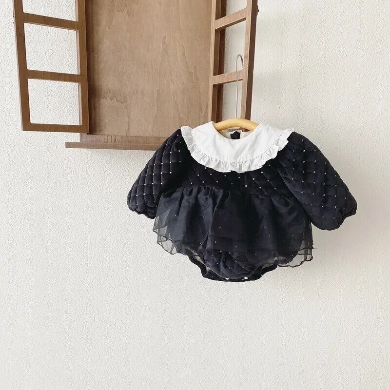 水玉柄×フワフワチュールでドレス風なロンパース♩